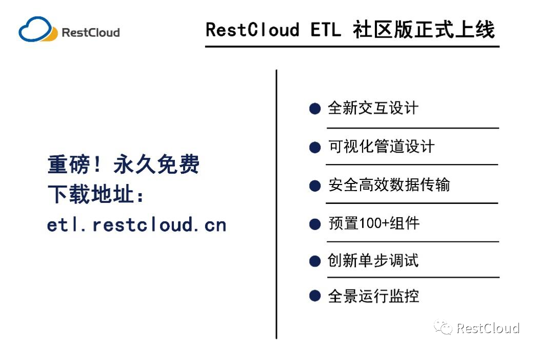 2022年4月18日,国内领先的数据集成企业RestCloud发布了全新的ETL社区版本。