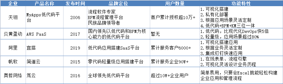 (1)专注BPM和PaaS开发研究,是面向大中型企业的PaaS平台。