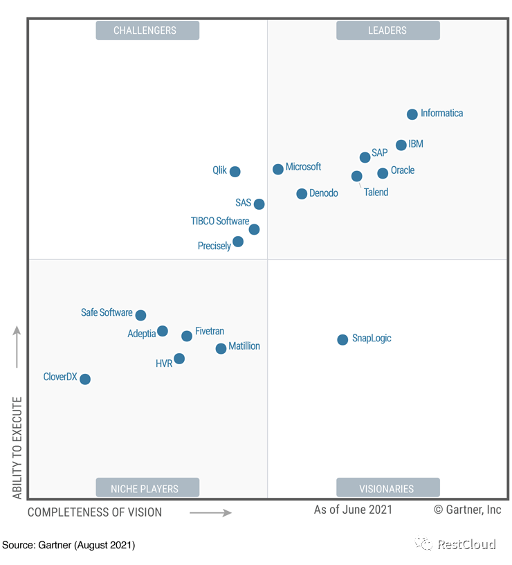 从贝哲斯信息咨询发布的2022-2028年中国数据集成工具市场数据分析与行业洞察报告中所列举的数据集成工具主要市场参与者有Informatica、FiveTran、Talend、Oracle、Denodo、IBM、Microsoft、SAP、Tibco、Matillion、SAS、Kettle等,国内企业无一上榜。