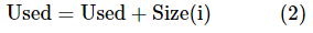 (3)如果请求的文件i在缓存中不存在副本,那么边缘客户端将向广域虚拟数据空间系统获取文件数据。当文件请求表中对应的文件超过阈值时,边缘缓存系统获取文件的前K个部分(Size(i)),并进行缓存。文件访问次数Fr(i)=1,计算对象的价值,并将文件保存到缓存中,Used值会发生变换,如式(2)所示: