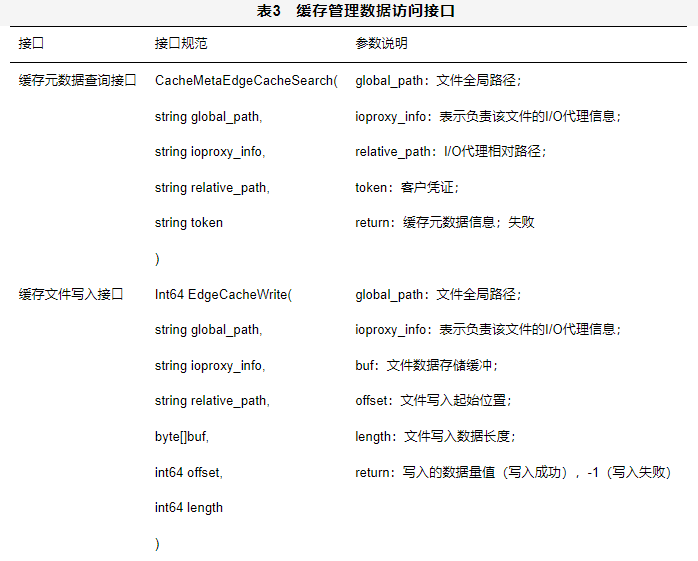 通过上述示例可知,尽管国内外仅有的几个跨广域网环境的存储系统已经实现了跨广域环境的存储资源的统一管理,如GVDS、欧洲网格基础设施(EGI),但仍面临如下数据共享性能的新挑战:缺乏边缘缓存系统,导致数据在广域网环境中进行冗余传输,广域环境存在很高的传输时延,无法充分发挥广域虚拟数据空间系统的存储资源聚合效应的优势,最终会降低高性能计算应用的性能。因此,靠近客户端的边缘缓存研究是跨广域存储系统研究领域的热点之一,也是亟须解决的问题之一。基于GVDS现有架构构建边缘缓存系统具有十分重要的意义,可提高广域虚拟数据空间数据访问和数据共享的效率,对于促进高性能计算有重要的推动作用。为了解决上述示例中边缘客户端在访问与共享数据时存在的问题,本文在GVDS中设计并实现了云边协同的边缘缓存系统,通过提升共享数据效率来提高边缘用户的整体数据访问性能,具体如下。本文设计并实现了边缘缓存系统的架构,并将其作为广域虚拟数据空间系统的补充。该架构最大限度地利用了跨域虚拟数据空间中现有的数据访问机制,尽可能地减少了对广域虚拟数据空间基础软件系统的修改;另外,本文提出并实现了一系列边缘缓存的关键技术,具体包括缓存索引机制、缓存替换策略、边缘缓存集群方案设计、缓存数据一致性策略。基于上述边缘缓存的架构和关键技术,在广域虚拟数据空间系统中实现了边缘缓存系统。边缘缓存系统由边缘客户端模块和边缘缓存服务节点组成,其中边缘缓存服务节点包括缓存接口层、缓存组织层和数据服务层。2 相关研究工作