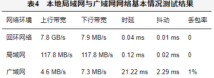 在真实的广域网环境中,在有无边缘缓存的情况下,对边缘客户端的读写数据与元数据的访问等方面进行性能对比测试。在中科院网络信息中心、国家超算济南中心、国家超算长沙中心、上海超算中心和国家超算广州中心5个节点上部署了测试环境。● 虚拟数据空间系统在有无边缘缓存系统情况下的性能对比试验,对比实验从元数据访问性能、文件访问性能、文件并发访问性能等方面进行;● 在局域网内搭建NFS,在相同局域网环境中,分析通过边缘缓存系统访问底层文件与通过NFS访问底层文件系统的性能差异;● 为了测试边缘缓存系统本身带来的性能损失,将边缘客户端与边缘缓存服务节点部署在同一节点上,相比于直接访问底层存储,测试通过边缘缓存系统访问底层存储带来的性能损失。图19所示为广域网环境的节点拓扑。边缘客户端的配置、边缘缓存服务节点配置以及国家超算济南中心的服务器配置与功能测试环境配置相同。交换机为千兆网交换机,可提供局域网千兆带宽的物理链路。在广域网环境节点的网络配置中,边缘客户端和边缘缓存服务节点处于同一局域网中。表4描述了本地局域网与广域网的基本网络情况测试结果。性能测试采用了Linux命令集和fio等测试命令。