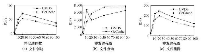 图20 在多进程并发情况下GVDS与GeCache的元数据访问性能