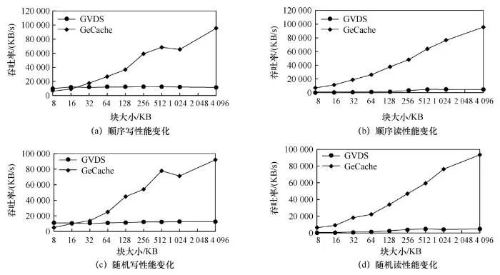 图21 GVDS与GeCache单进程情况下文件读写性能