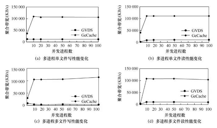 图22 GVDS与GeCache多进程并发情况下文件读写性能