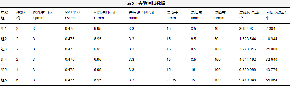 热工水力软件CVR-PACA和结构力学软件CVR-HARSA(原CVR-HISRES)的流固耦合模拟是CVR1.0项目的研究重点。PACA与HARSA耦合旨在进行全堆规模的流致振动分析、获得燃料棒和固定支架间的磨损评估数据,有助于堆芯安全分析、设计及反应堆延寿。耦合的本质是完成流固交界面上数值数据的融合转换,其中,数值数据具有数据量巨大、不匹配的特点。数据量巨大是由PACA与HARSA高精细模拟计算的特点决定的,而不匹配是两者建模的网格类型和密度不同导致的。基于此,利用三维R树索引大规模流体数据,完成了PACA输出的流体压力向HARSA的插值计算,即流体压力数据的融合转换计算。实验表明,此种插值计算方式提高了流体压力的融合转换效率和大规模高精细耦合计算效率。PACA输出的流体数据规模巨大,如10 mm长的双流道模型的顶点数目超过30万;100 mm长的6流道模型的顶点数目超过900万,因此采用三维R树索引大规模流体网格顶点进行流体压力数据的插值计算。另外,PACA输出的网格顶点难以还原拓扑结构,因此在数据融合转换过程中采用邻近点加权平均的匹配计算方式。流体压力数据的整体插值过程包括图4所示的3个阶段。● 数据清洗阶段:获取PACA计算输出的原始数据,原始数据中存在许多重复数据和融合转换计算不需要的数据,该阶段对这部分数据进行清洗处理,并输出后续计算所需数据,即流体网格顶点及各顶点对应的压力值。● 构建三维R树阶段:对上阶段输出数据进行三维R树的构建,其中,树中叶子节点包围的是三维空间中的流体网格顶点,每个顶点都唯一对应一个压力值属性。● 匹配计算阶段:针对每个固体网格顶点遍历三维R树,搜索距离它最近的前k个流体顶点,并对这k个顶点及压力值进行邻近点加权平均计算,得到固体顶点对应的压力值。经过上述计算,得到每个固体网格顶点对应的压力值,然后将这些顶点及对应压力值输出为HARSA计算所需的格式。利用表5中的6组建模数据进行实验,测试了直接插值方式和基于三维R树的插值方式在不同条件下的性能,分别用BaseLine、RTree表示这两种插值方式。其中,直接插值方式直接搜索所有流体顶点,找到距离每个固体顶点最近的k个流体顶点,并进行加权计算得到该顶点对应的压力值。