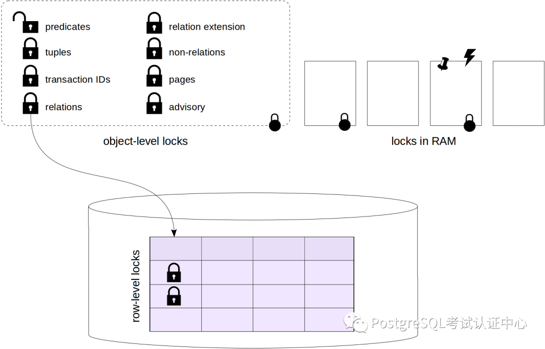 我们从对象级锁开始。这里的对象主要是指关系,即表、索引、序列和物化视图,但也包括其他一些实体。这些锁通常用于保护对象免受同时更改或在更改对象时使用,但也用于其他需要。