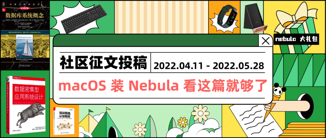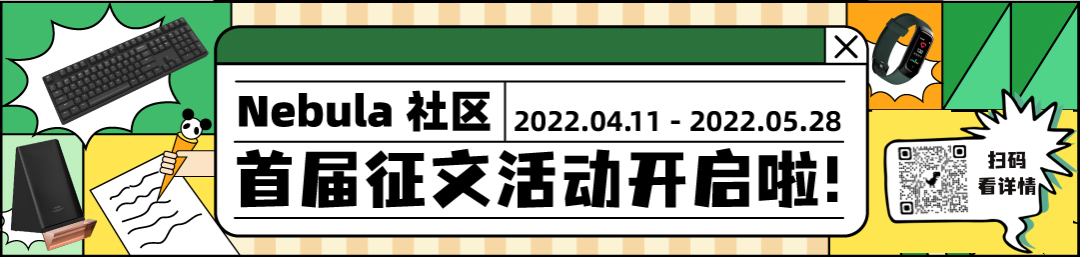 Nebula 社区首届征文活动来啦🔗 奖品丰厚,使用场景全覆盖:撸码机械键盘⌨️、手机无线充🔋、健康小助手智能手环⌚️,更有数据库设计、知识图谱实践书籍📚 等你来领,还有 Nebula 精致周边送不停哦🎁
