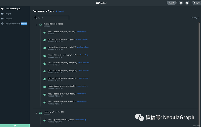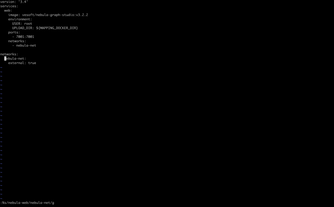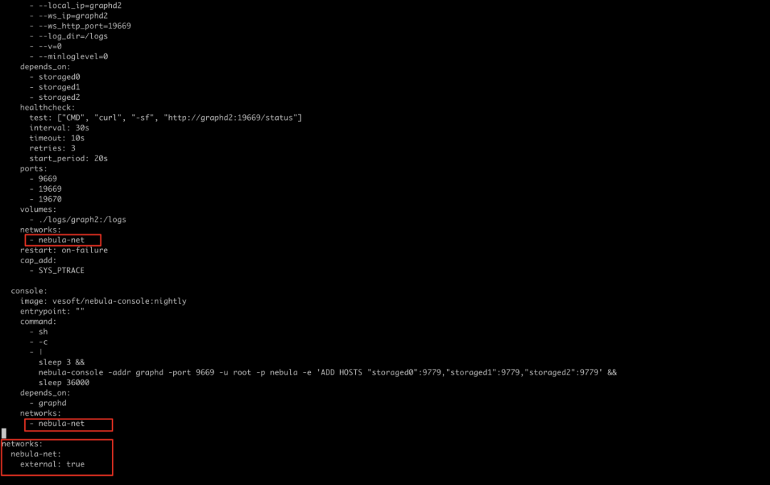 修改 docker-compose.yaml 全局替换网络为 nebula-net,增加 external: true