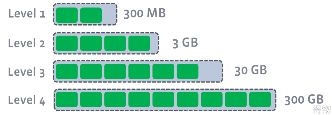 所有非0层都有目标大小。压缩的目标是限制这些层的数据大小。大小目标通常是指数增加。