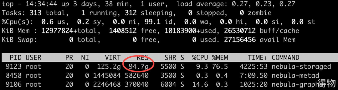 通过Linux top 命令很快定位到是由于 nebula-storaged内存使用过多。