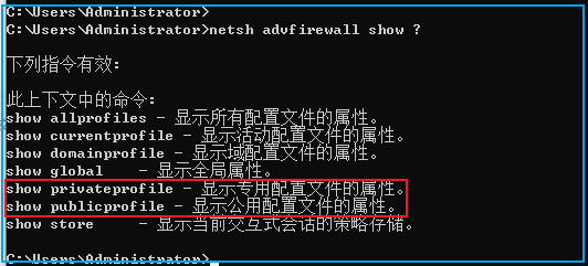netsh advfirewall show ?