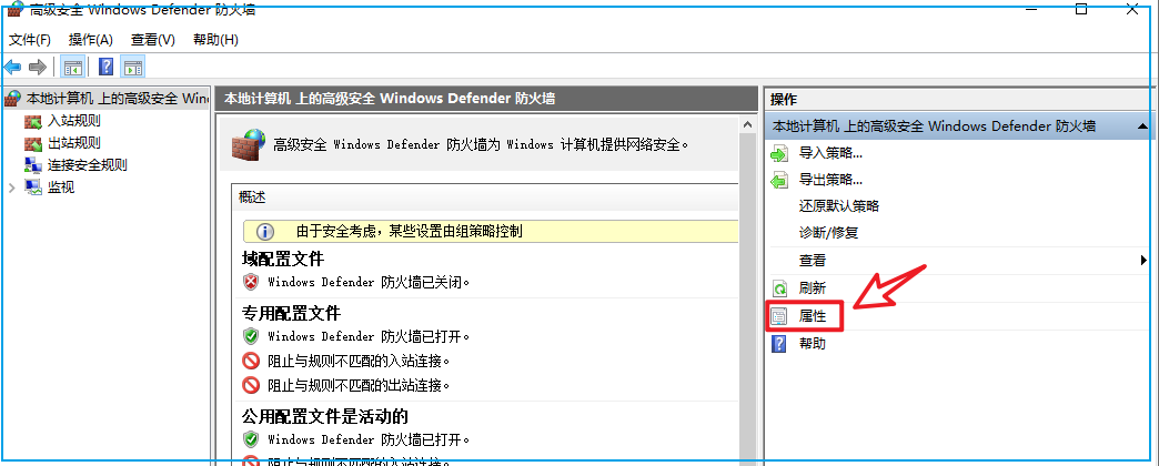 点开防火墙属性,可以看到有三种配置