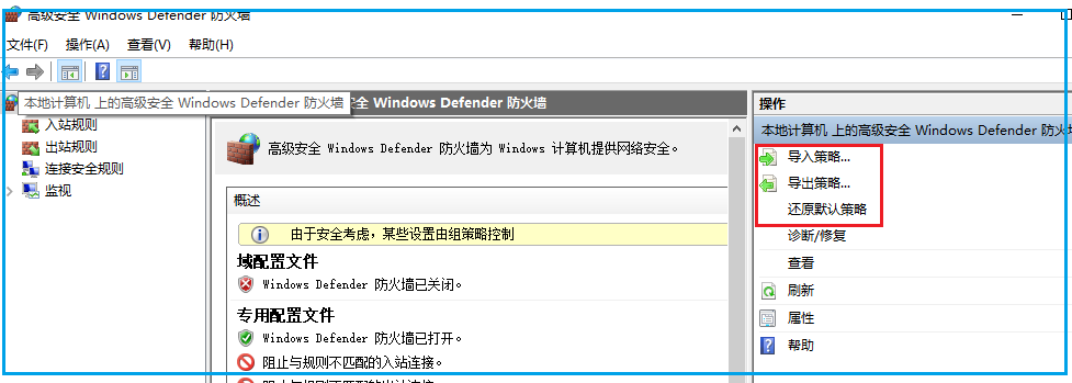 这里要解释一下,终端也就是我们个人使用的电脑,默认策略应该是入站全阻止,出站全允许。因为作为终端,应该是没有人主动访问你才对,如果有人访问,那很有可能是黑客。所以作为终端要阻止别人访问我们的电脑,也就是入站阻止。出站就是我们要上网,要访问服务器,这些都是出站方向。