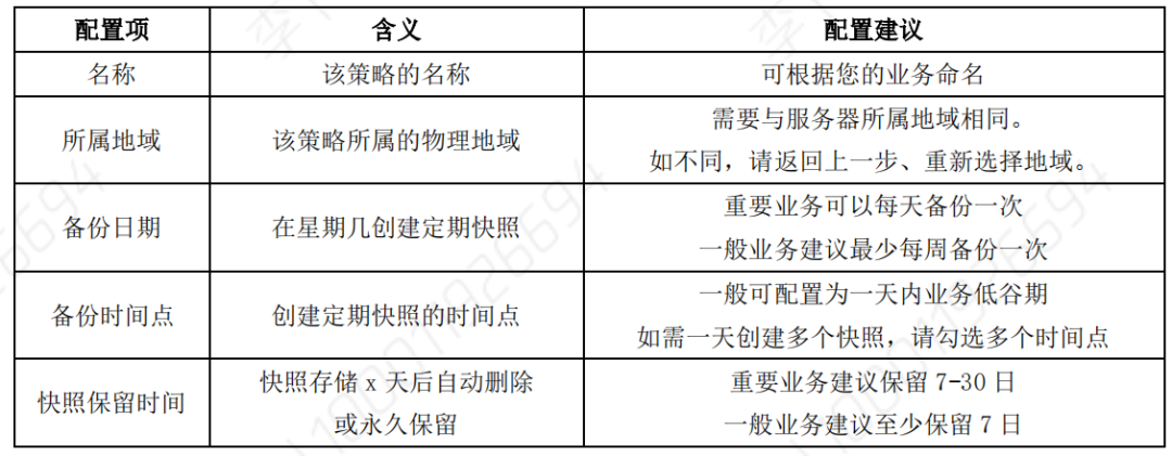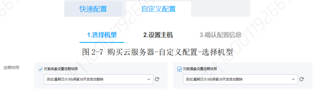 为数据盘设计定期快照,然后选择合适的定期快照策略,即可继续购买服务器的流程。