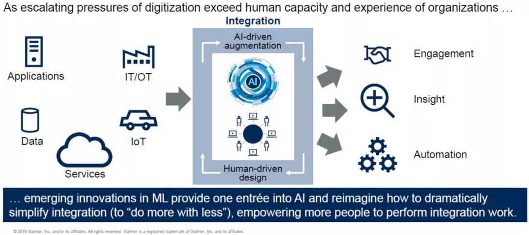 未来,数据集成工作需要人与机器共同完成。数据存在不同的端口且数量庞大,因此单独的人力难以进行处理、需有工具进行支持。未来,这种工具将引入人工智能与机器学习技术,让人力做不到或短期内无法实现的工作变成现实。
