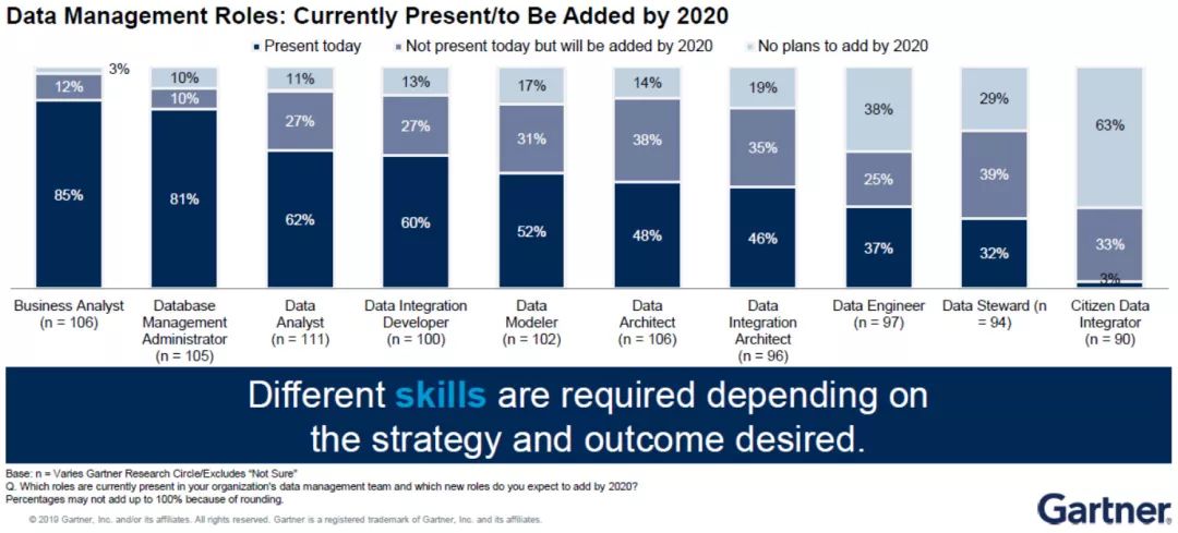 但需强调的是,每个企业机构都有自己不同的战略,它们需要根据预测的业务结果来应用不同的技能、设置不同的数据管理岗位。