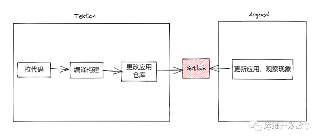在实际的工作中,Tekton可以完成CICD的所有工作,并没有强制的将它划分为CI工具或者CD工具。在今天的文章中,我们就会将CI和CD进行分开,让Tekton专注于CI,CD则交给Argocd。