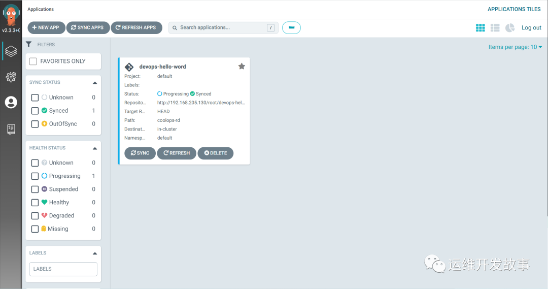 前提:自己部署好Argocd,如果对Argocd不熟悉可以到官网(https://argo-cd.readthedocs.io/en/stable/)进行学习,也可以在《运维开发故事》公众号搜索Argocd相关文章进行学习。
