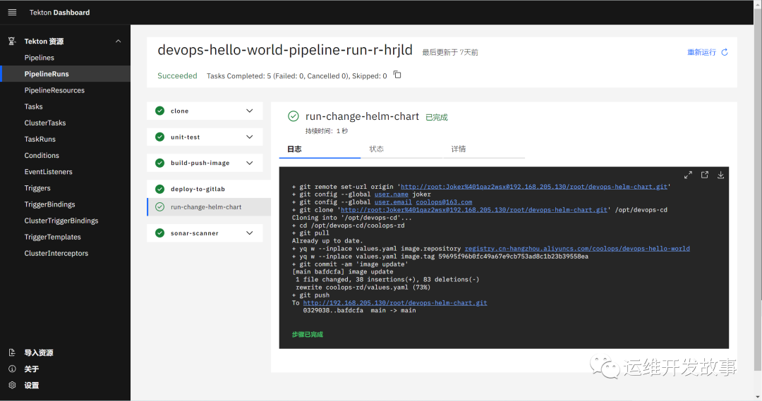 然后在Tekton Dashboard上看到运行完成,如下: