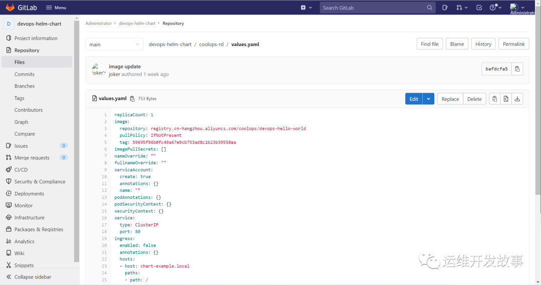 Chart仓库中的value.yaml也进行了对应的更改,如下: