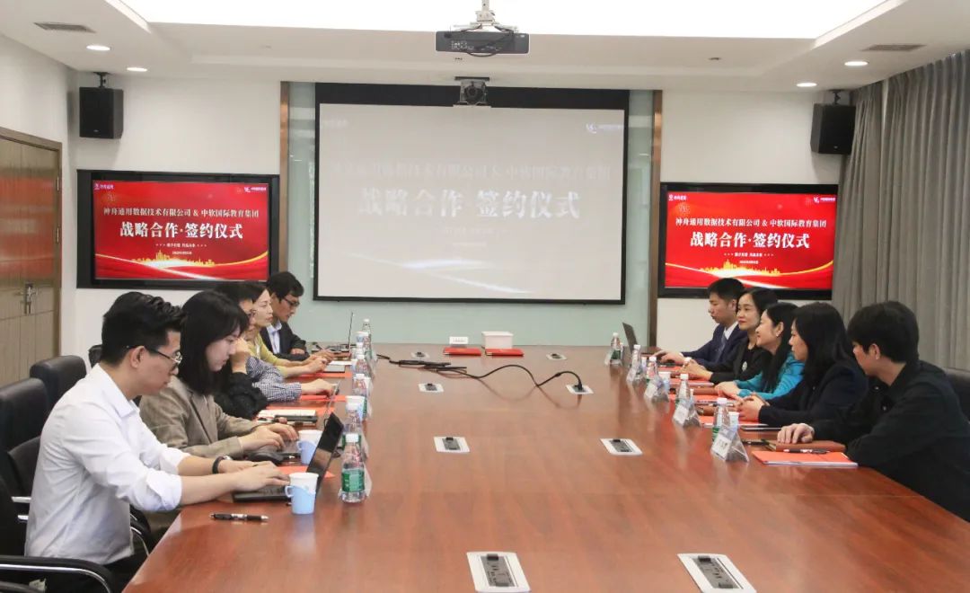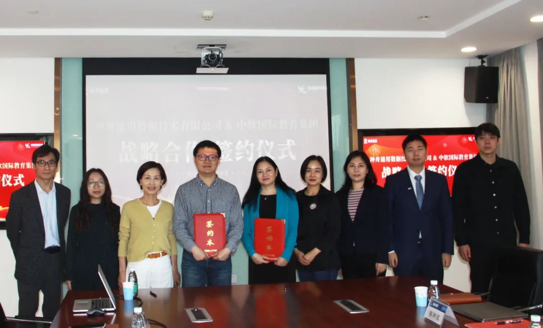 神舟通用公司副总经理孙磊和中软国际教育副总裁成焕代表双方签署战略合作协议。神舟通用公司行政总监兼总经理助理周丽霞、神舟通用公司人力资源部总监赵艳春、中软国际教育宅客学院总经理孙晓慧、中软国际教育战略规划部总监董丽君等相关领导出席并见证签约。
