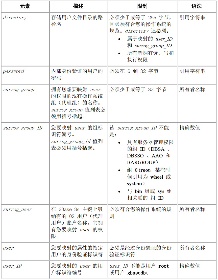 必须将 USERMAPPING 配置参数设置为 ADMIN 才能启用 AUTHORIZATION 子句。有关此不推荐使用语法的更多信息,请参阅 AUTHORIZATION 子句中 CREATE USER 语句( UNIX、