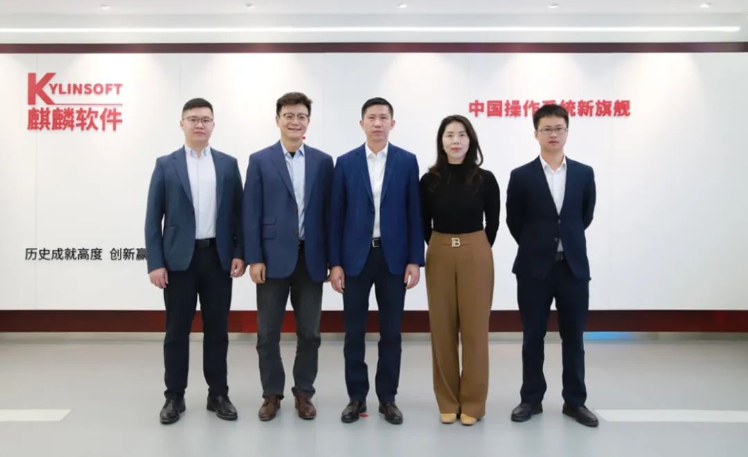 4月21日, 数字广西集团党委委员、执行总裁靳芳一行莅临麒麟软件,与麒麟软件高级副总裁宋介鹏及公司相关业务领导进行会面交流,双方就进一步深化务实合作,携手发展数字经济进行了深入探讨。