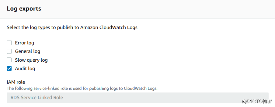 通过RDS的Modify页面,将audit log输出到cloudwatch。