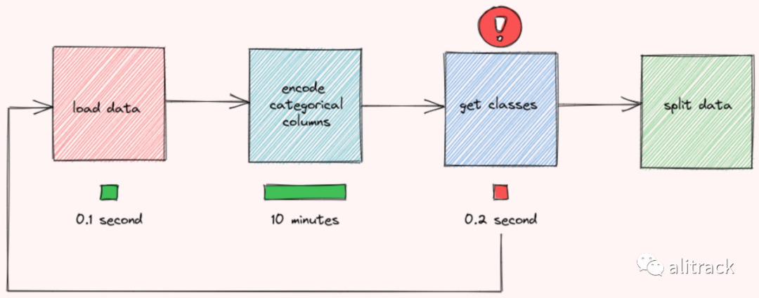 以这种方式运行函数还可以防止在不起作用的函数上浪费不必要的时间。如果函数get_classes中出现错误,工作流将立即重新启动,而无需等待函数 encode_categorical_columns