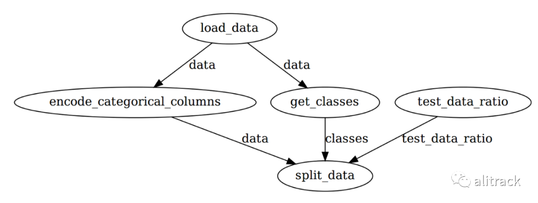 from prefect import task, Flow, Parametertest_data_ratio = Parameter("test_data_ratio", default=0.2)train_test_dict = split_data(data=categorical_columns, test_data_ratio=test_data_ratio, classes=classes)