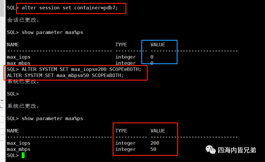 ALTER SYSTEM SET max_iops=200 SCOPE=BOTH;