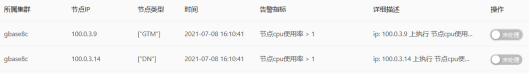 页面列表显示历史告警信息,提供所属集群、节点IP、节点类型、告警指标、详细描述和操作的详细告警信息。用户可优先查看并处理操作状态为“未处理”的告警信息。处理结束后,点击