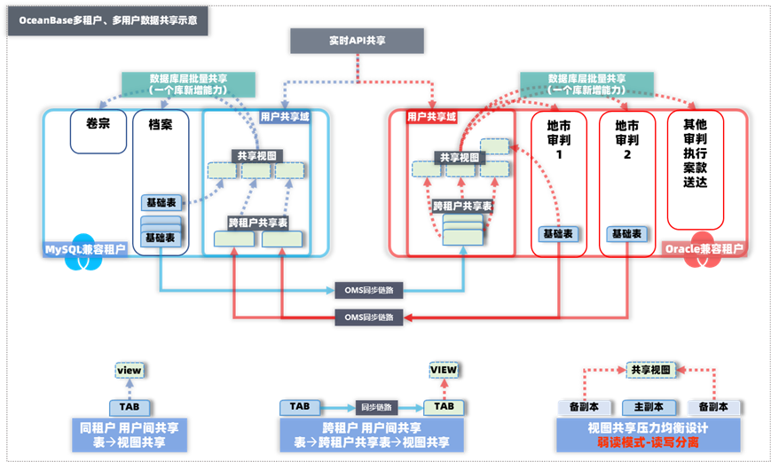 OceanBase多租户间、租户内多用户数据共享和读写分离示意