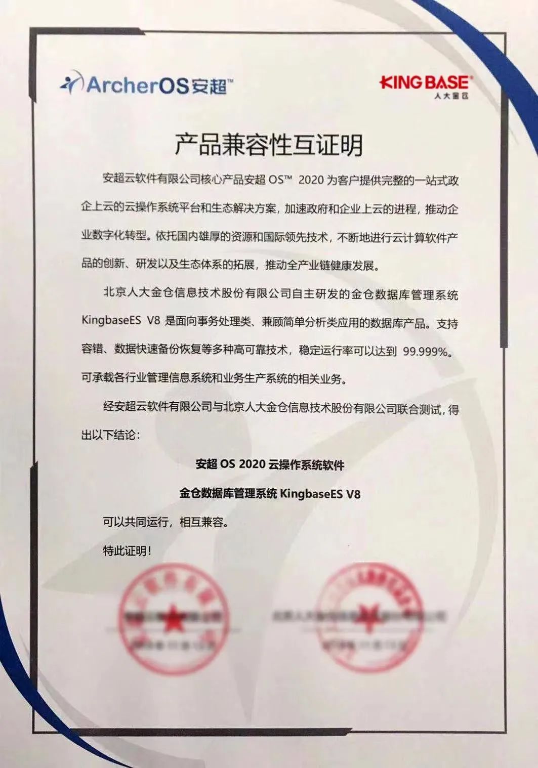 日前,安超云与北京人大金仓信息技术股份有限公司(以下简称“人大金仓”)完成产品兼容性互认证。此次兼容性互认证经安超云与人大金仓联合测试得出:安超云操作系统与人大金仓的金仓数据库管理系统 KingbaseES V8相互兼容,系统功能运行稳定,满足用户更多的上云需求,双方后续还将继续加强沟通合作,扩大技术兼容认证范围,打通更多的产品线,支撑用户更多关键性应用需求。