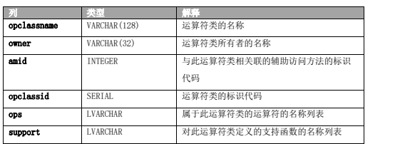 sysopclasses 系统目录表包含有关与辅助访问方法相关联的运算符类的信息。它对已在