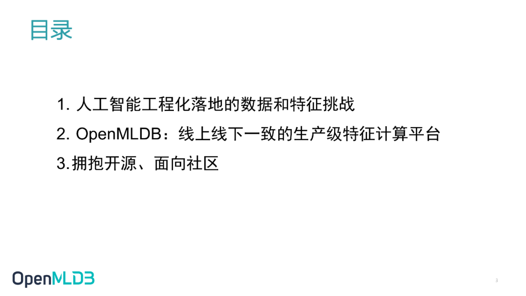导读:今天我们将从线上线下一致的生产级特征计算平台这个点切入,从「人工智能工程化落地过程中企业面临的数据和特征挑战」 ,「OpenMLDB:线上线下一致性的生产级特征计算平台」,「拥抱开源、面向社区」三个方面介绍开源机器学习数据库 OpenMLDB。