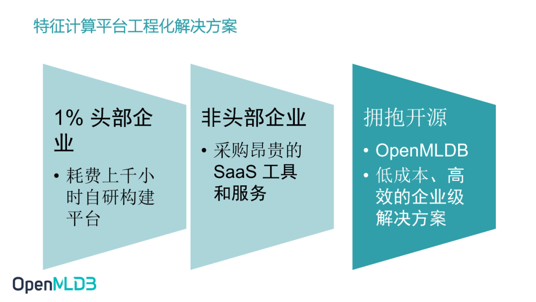 而今天,OpenMLDB 就提供了另外一种可能,我们提供开源的解决方案,提供 FeatureOps 的企业级解决方案,帮助企业去做到低成本高效率地解决痛难点。