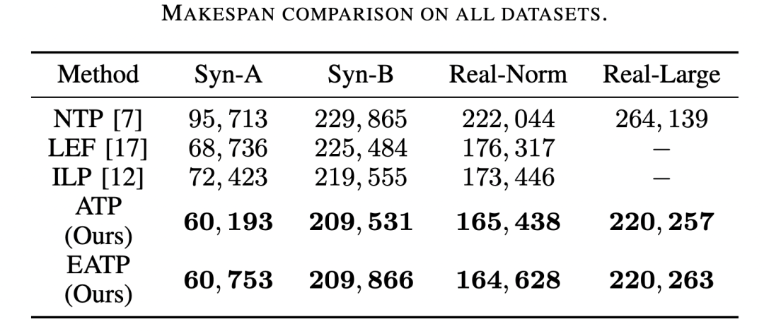 新算法在人工和真实数据集上取得了显著效果,为了全面真实的模拟仓库环境,本研究建立了测试环境,实现了对拣货过程的全链路模拟验证。实验结果表明其性能大幅超越了多智能体路径规划和时空任务分配领域的相关算法(图3)。