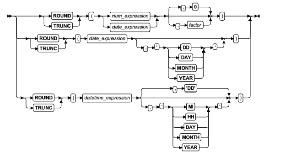 下图展示 ROUND 和 TRUNC 代数函数的语法,它们支持相同的语法。然而,由于它们的语义不同,
