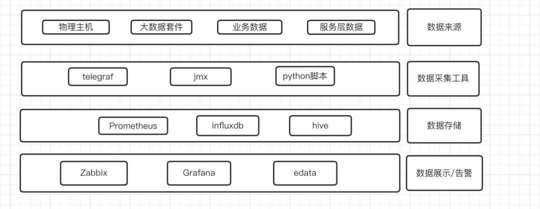 第三块为业务数据层监控告警,由开发人员执行编写python脚本进行数据对比达到报警的目的