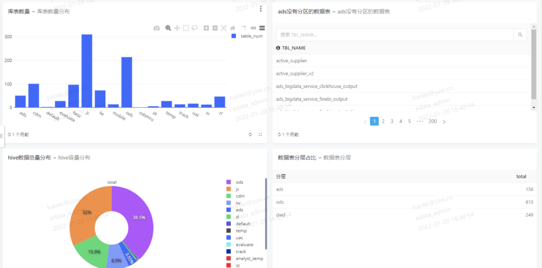 对于业务层面数据,我们收集在hive中之后,采用公司自研的edata自主报表平台,展示业务数据层面的数据,形成固定通用的业务数据周报,发给上层的领导。局部效果如下