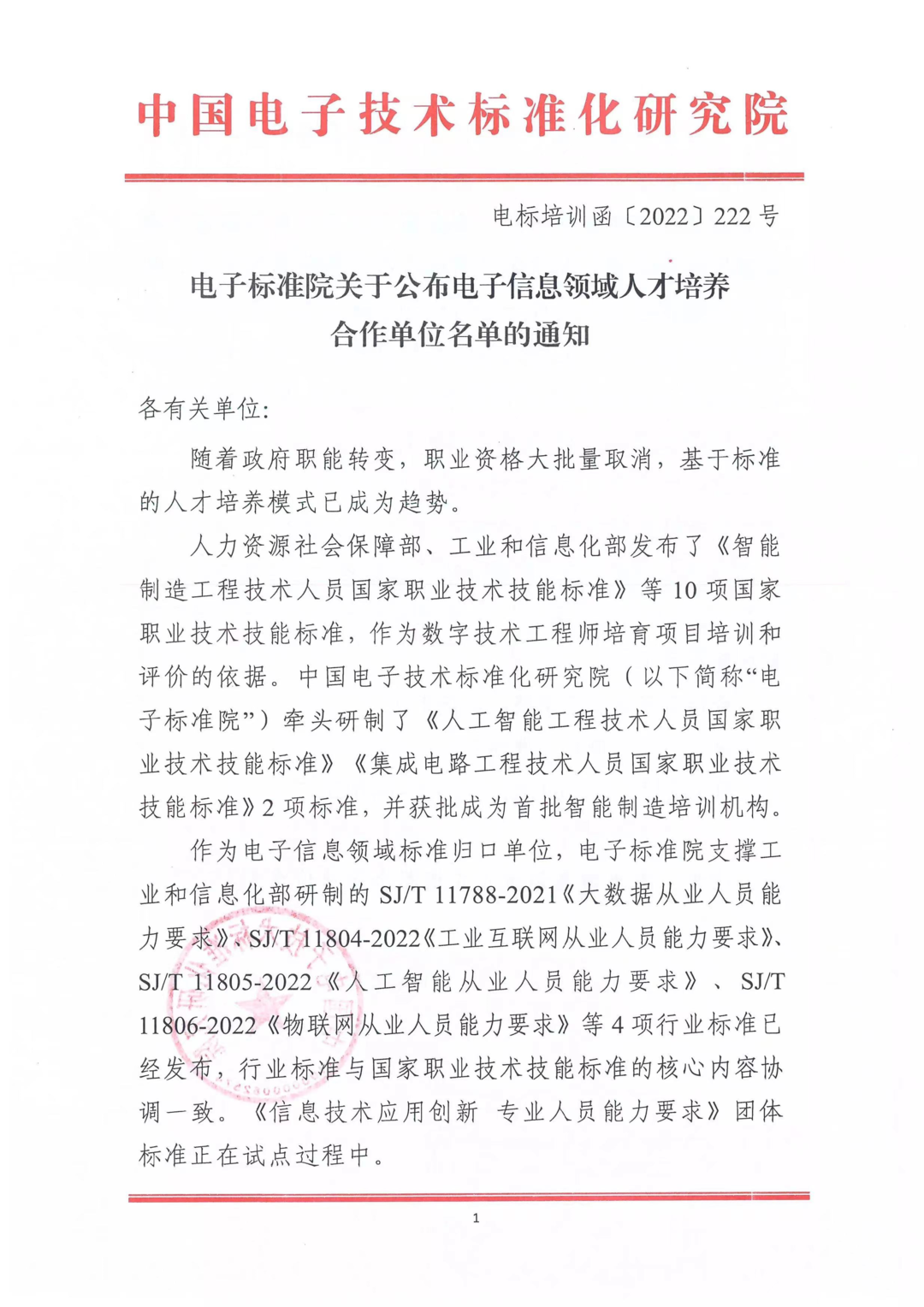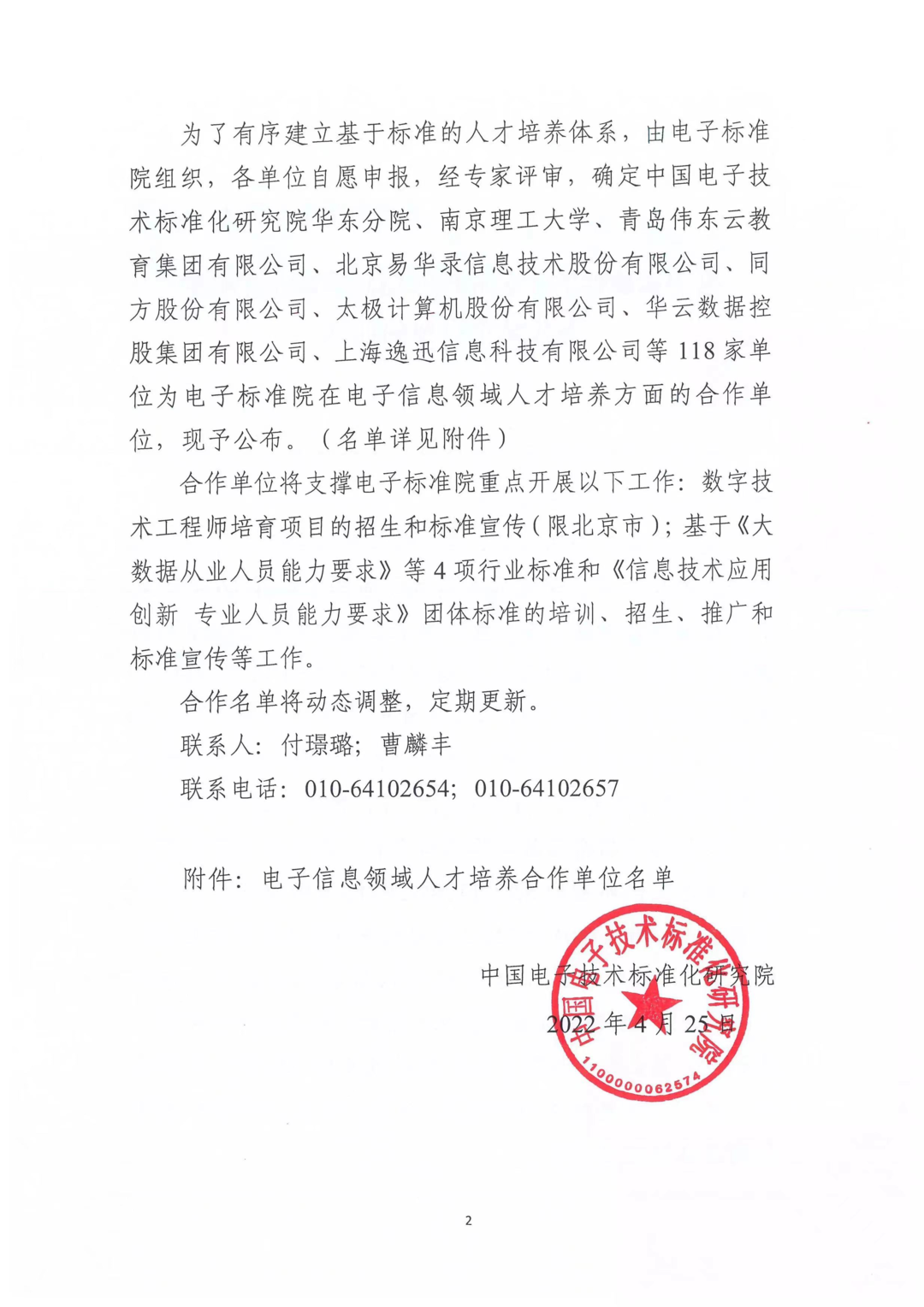 近日,作为我国电子信息领域标准归口单位的中国电子技术标准化研究院(以下简称”电子标准院”)公布了电子信息领域人才培养合作单位名单,人大金仓凭借着丰富的人才培养实践经验和深厚的技术底蕴成功入选,成为该名单内唯一一家国产数据库企业。