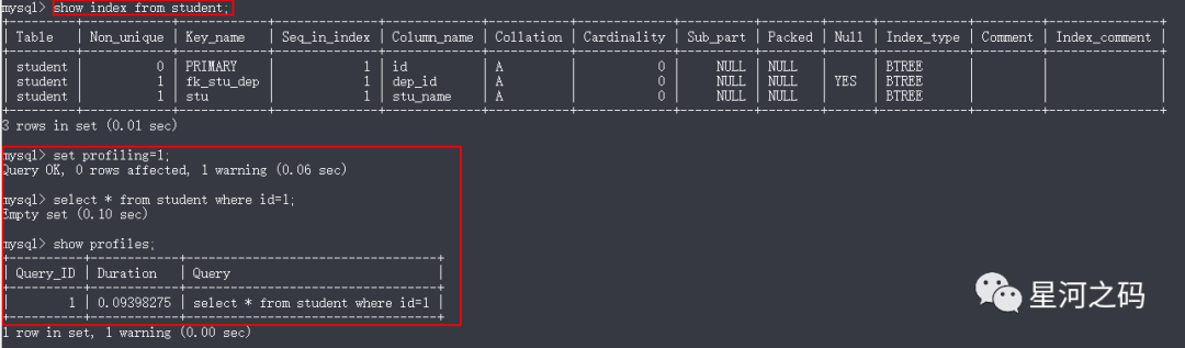 show index from table_name;查看SQL执行时间