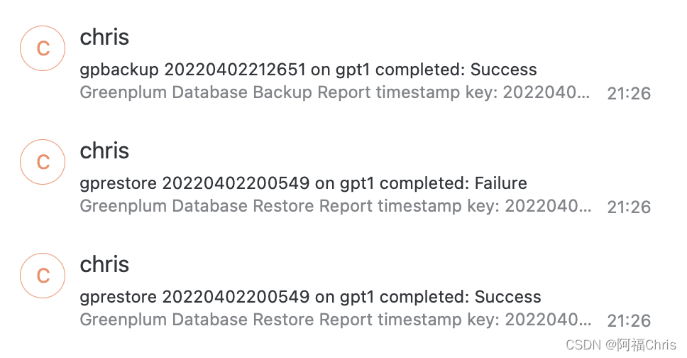 /home/chris/gpAdminLogs/gprestore_20220402.log中查询。个人感觉这个参数还是要慎用,使用场景有限,在特别熟悉参数的前提下,可以配合一些其他的参数共同使用,特别要注意避免数据重复恢复问题。