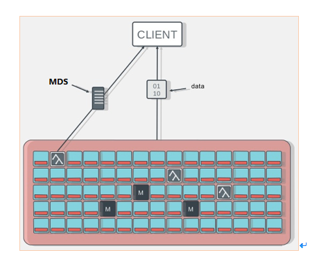 文件存储服务通过CephFS接口实现。可以提供PB级分布式文件系统。这里会引入一个新的组件MDS(Meta Data Server),它主要为兼容POSIX文件系统提供元数据,如目录和文件元数据。同时,MDS会将元数据也存在RADOS(Ceph Cluster)中。元数据存储在RADOS中后,元数据本身也达到了并行化,大大加强了文件操作的速度。需要注意的是MDS并不会直接为Client提供文件数据,而只是为Client提供元数据的操作。