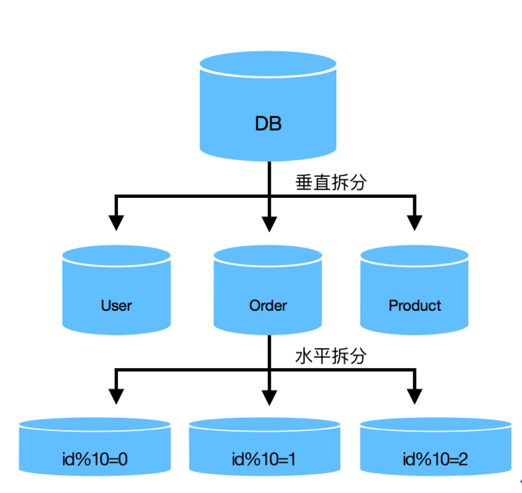 垂直分库:就是依据业务功能的不同,划分为不同的业务库。例如按照user、order和product把user数据放到用户库、把order数据放到订单库、把product数据放到产品库。