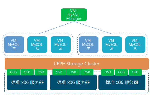 存储层由X86服务器和基于ceph的分布式存储软件构成,每个X86服务器节点负责部分数据存储,同时在每个存储节点内通过ceph的读写主-副机制保障数据写入的一致性。即在数据写入时客户端只向对应的主OSD写入数据,然后再发生数据到其他副本,只有所有节点的OSD都完成数据写入时,主OSD才确认完成写请求。