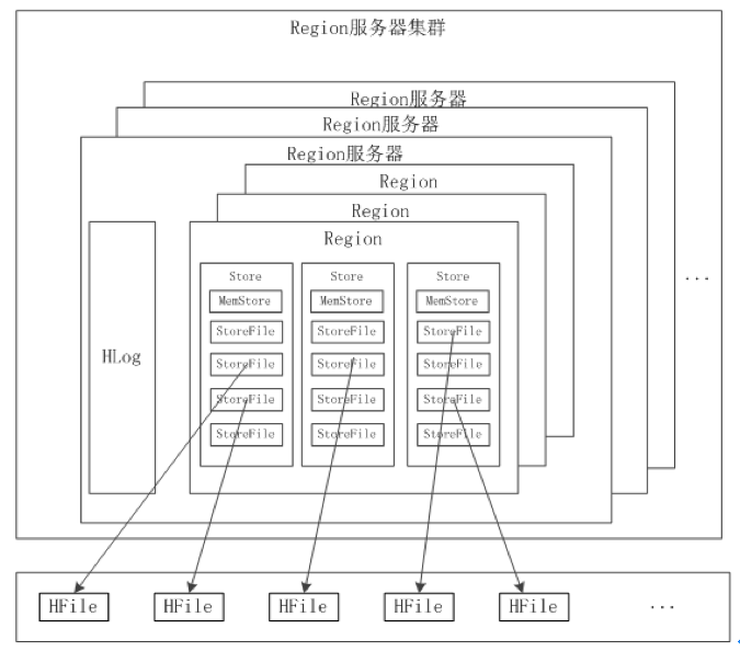 4、Region服务器是HBase中最核心的模块,一个HBase服务器集群中通常包含多个Region服务器。HBase服务器主要负责Region中的数据的读写和管理,负责维护分配给自己的Region,并响应用户的读写请求。主要架构如下: