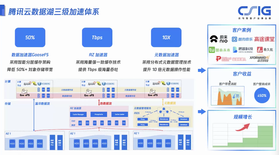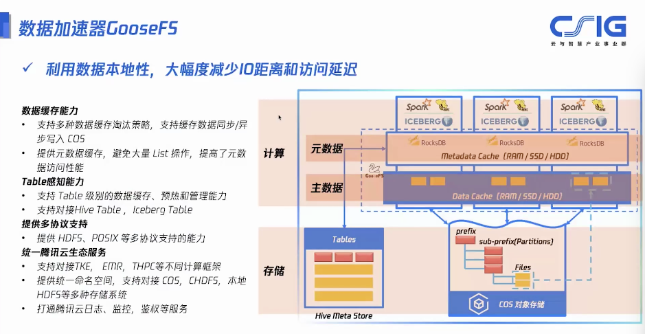 数据加速器GooseFS,是能够提供一个智能的分层的缓存架构,能够在计算端缓存的一些热数据,帮助用户降低对象存储的访问带宽;